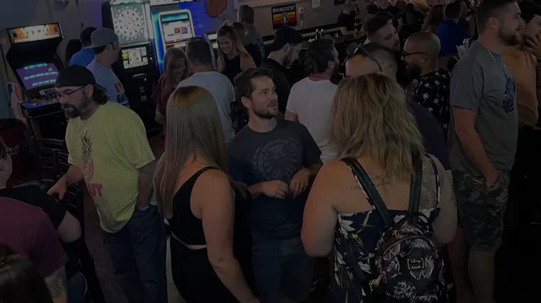 a large group of people at a bar