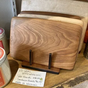It was fun (and cool - thank you!!) walking around this little shop selling homemade/handmade gifts. The shop dog was extremely well-behaved. The pottery was unique. Beautiful wood spoons and knives; earrings, candles, knickknacks, greeting cards... And two chairs to sit outside in the shade for 'the husbands,' lol.