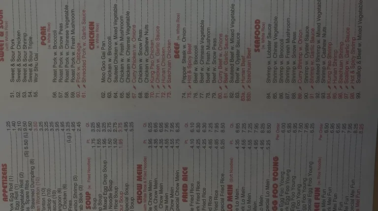 a menu for a chinese restaurant