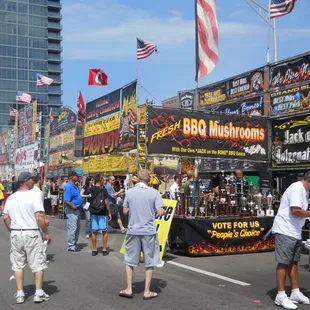 About the only good thing about this is the music and the people watching.We can't come here early in the day due to other obligations. So it's either Friday or Saturday evening for us. We came on Saturday at around 7:30.It's not like it's super crowded but the lines for everything are way too long. I'm guessing about 50 to 100 people in line at every food stand. Lines wrapping around so it can be tough to see where they end.So once again none of us got food. We sat near the West Bank stage where there were very few spots available with shade. We found a spot but couldn't see the stage. Better that than sitting in the sun I guess.I waited in line for about 20 minutes to get drinks. After we finished those we went to a restaurant to eat.Now I know why we haven't come to this event in years. If you can't make it early in the day when there are fewer people you'll wait in line maybe an hour (or more) for food. I don't know what they can do about it but it's not an enjoyable experience smelling the ribs cooking and being expected to stand in line so long to buy them. If you're hungry and it's the evening don't bother coming to this. I don't know I could give this more than 1 star when it's nearly impossible to get any food.Columbus badly needs another rib festival, cook off, whatever. Something where attendees can actually eat ribs.