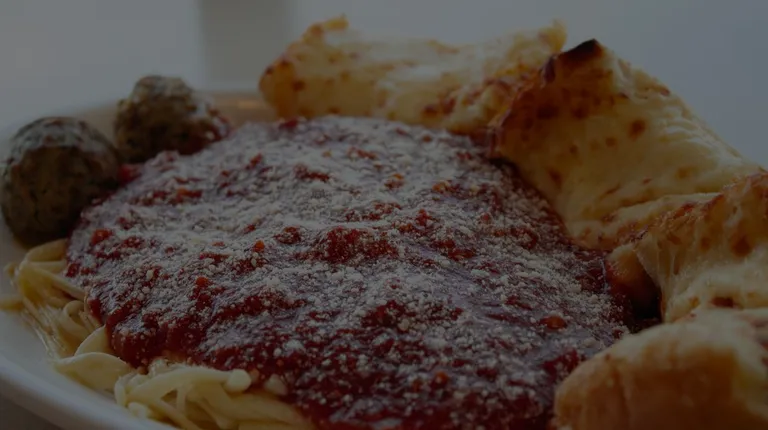 Chicken parmigiana dinner with a dash of bread tie.
