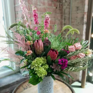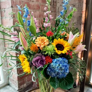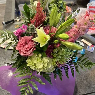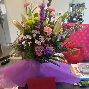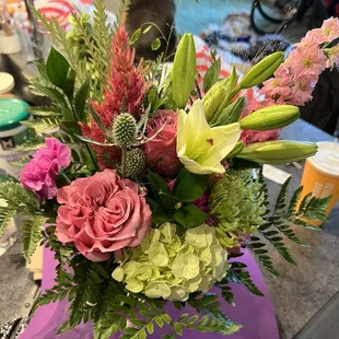 The flowers were beautiful. Not a cookie cutter arrangement. It was unique and beautiful. I highly recommend this business.