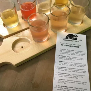 Love this spot! I've had Mad Moon quite a few times locally, but had not realized that they had a tap room until more recently. The location of the tap room seems a little odd as you're driving back into a storage area, but I've seen that a few times before with breweries. They do have some signs to help point you in the right direction as well. Also, this spot is a little off the path from other breweries in the area, in a more up and coming location, but the inside is well decorated and cool. I loved the bright colors inside the taproom, and they offered single drinks or flights. There were quite a few options to choose from and the bartender was great with helping us choose our flight. It was great to see another locally made product doing well, and I will definitely be back to try out some more ciders!