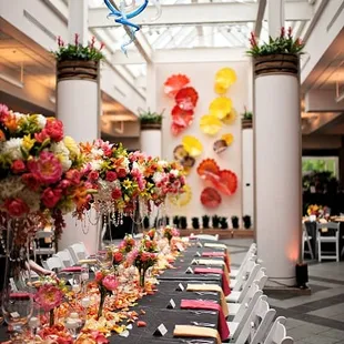 A beautiful wedding at Cultural Arts Center, downtown Columbus, Ohio. Imperial Stripe Linen and Black Chiavari Chairs--so perfect!