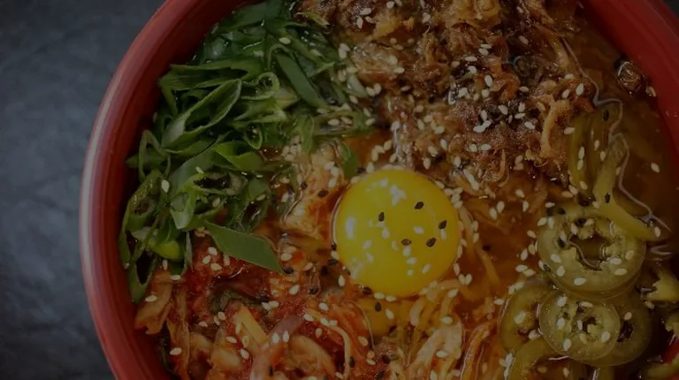 I caught the cart on the far north side in the Crosswoods using Street Food Finder online. I got there late and the chef had sold out of most of the proteins but he gave me a discounted bowl of the ramen version of bacon and eggs. After giving my bowl a lashing of rooster sauce I scuttled back to my vehicle to dig into this steaming goodness.Popped the top to an ample share of cellophane noodles topped with homemade pickled radishes and cucumber plus two perfectly soft boiled eggs then covered in a rich salty porky bacon broth made this a perfect lunchable. As a fan of asian soups and noodle houses I wasn't disappointed by my visit and look forward to catching this cart around Cbus!