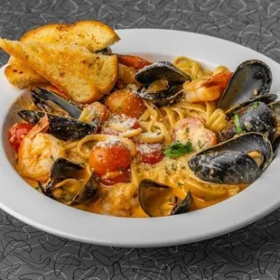 For lunch I had the shrimp and mussel Diavalo. I made the right choice. The portion was huge. It had tons of mussels and shrimp that I couldn't even finish it. The sauce was so delicious and creamy. I expected a cheap dish, but this was better than some of the pasta I've had at Cameron Mitchell's Del mar and the Pearl. So unexpected in the best way possible. Kudos to the chef and new owners. You definitely have new fans. Chill throwback vibes with really good food. Try it!