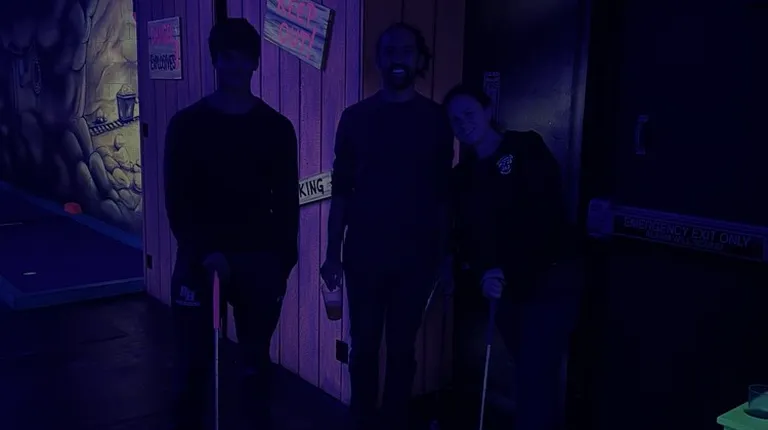 Cute mini golf place! I found it via Yelp (thanks, friends) there was only one other car in the parking lot, so we were a little nervous, but it was fun! Make sure to wear light colors so you show up in the black-light :) -It was $10/person to get in-some drinks (bar options, shakes, soda)-optional scavenger hunt while doing the 18 hole course-they do have family discounts with pizza!