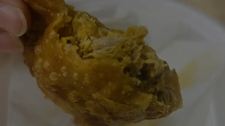 Rice and beans, Baked Chicken, Pork Chunks, beef empanada, cheese danishes or blintzes. As the picture shows everything was dry.