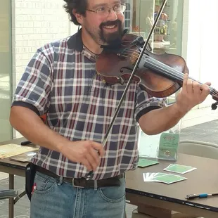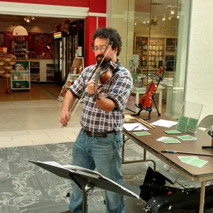 My son has been taking lessons from Tyler for almost a year now. He primarily teaches Irish fiddle to my son, but his background is classical and teaches most of his students classical. I love that they play together - he doesn't just tell you what to do but he demonstrates it and plays with you so you know when you're going wrong. When you've got it, he'll harmonize with you and, well, that's just fun! He breaks things down for my son and explains things thoroughly. My son really enjoys taking lessons with Tyler!