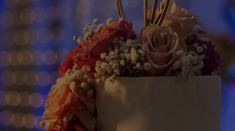 a closeup of a wedding cake