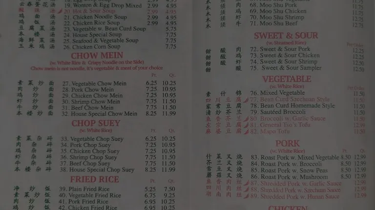Additional Chinese menu!