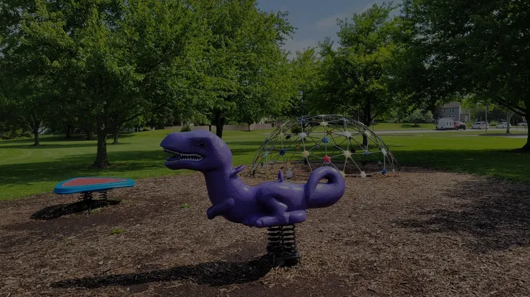 Wonderful large green space with a basketball court, shelterhouse and picnic tables, and two playgrounds. There is a paved trail and plenty of space to run around and enjoy, with trees around for shade. The larger playground, called the Discovery Playground, has a whole lot of options: slides, swings (tire and standard), climbing structures, monkey bars, dinos to ride on, and a whole lot more! It was highly approved and much enjoyed. There is a small parking lot available too.