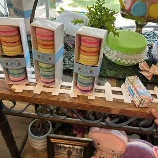 a display of macarons in a pastry shop