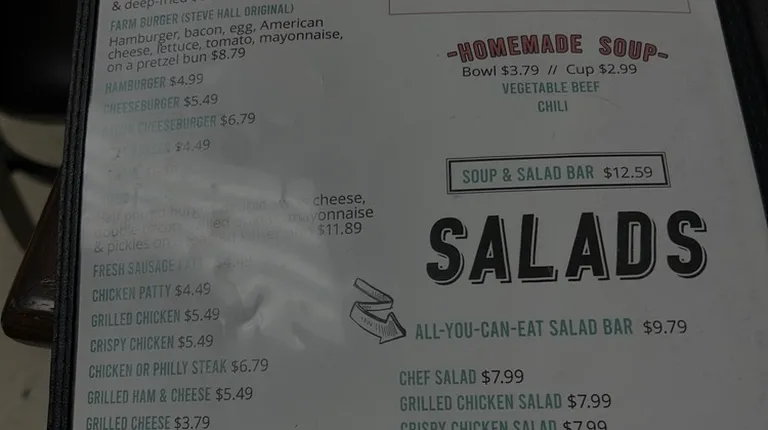 Great prices!We wanted a sit down restaurant after driving for a few hours and decided to give this place a try. The prices were reasonable and you could order breakfast or lunch. They had several kids meals to choose from. We tried French toast, mini corn dogs, burger, chicken Philly and the waffles. They even had a salad bar you could add for an additional price. Overall I felt the food was good but the portion sizes were inconsistent. One meal was more than filling and other meals left you still hungry. We just shared what we had left and everyone ended up happy. They also have the best croutons ever on a salad bar!