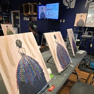Wonderful experience at this venue! They were so very welcoming and accommodating. It's an inviting space from the moment you arrive. The staff were all helpful and nice and cheery. The event, and the drinks were reasonably priced. It was easy to reserve and to make sure we sat with friends. Nice set up though a tad crowded in the room as they had a large party event in the larger space. Still plenty of room to work. The instructor was upbeat, friendly and helpful. It was easy to follow the directions, and we have plenty of creative freedom and help to go in a different direction if we wanted. The owner was very involved and so very sweet. I will definitely return. Great fun!!