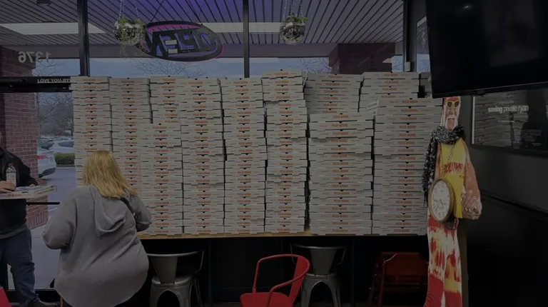 What a fun themed pizza shop that serves a delicious pizza. So happy they have arrived in the CBus market. They were a long standing shop in Newark and recently opened in Gahanna. So happy to have a good pizza option that isn't like eating a cracker with sauce and toppings.They have a small dining area to eat in and also offer takeout. We called in our order to a very pleasant person and then upon agreeing received text message updates on our order. Our pizza was prepared quickly and was ready upon my arrival. I loved the pizzas flavor and ratio of toppings. They will definitely be a regular option to consider for my future pizza nights. I am looking forward to try some of their specialty pizzas.