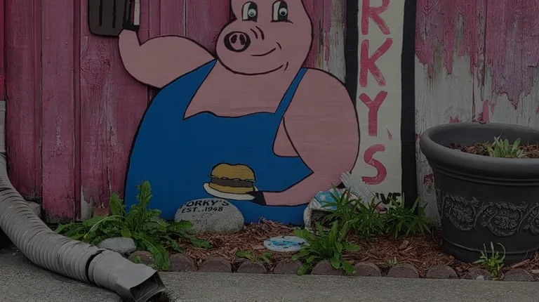 Don't be afraid of the age showing on this building. Our visit in July of 2023 to this establishment was a great one. Established in 1949. That makes it 74 years old.We were road tripping, and hubby found it. It was a must stop because we used to have one in IA when we were younger. Not as a chain, but close to same idea and decorations.The nostalgic smell of grease when you walk in floods your senses. I'm legit excited to clog my arteries with the delicious meal of the night. There are only 3 booths on each side of this triangle shaped building. A few bar stools around the island and then a hopping kitchen. The booths and table are worn from the use which didn't bother us. I checked in Yelp. A coupon popped up on Yelp, and I saw the signs asking for us to show it before ordering. The owner came out and apologized that she never authorized the coupon with Yelp but still gave a small discount. She and the waitress were both sweet.We got to talking, and she was 3rd generation owner. She took over from her dad. Runs the place and helps organization fund raisers but can't afford to compete with the car nights anymore. Our Porkys at home used to have car nights too which is why I asked. While sitting there a car pulled up and someone stepped out to take an order also!If you want an old fashion burger cooked in butter with toasted bun, delicious fries to dip in a chocolate malt at a reasonable price. Go here. These types of locally owned places are few and need their local support. I got a burger and fries. Served simple on a paper plate, and I savored every bite. Hubby also got a cheese burger and cheese balls with ranch. The food helpings aren't overly sized which meant no waste. I liked being able to eat everything I highly recommend it.