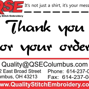 I just picked up an order from Quality Stitch Embroidery, and want to thank them (especially Matt) for an excellent job. I needed 5 t-shirts made at the very last minute because an on-line order from another company got mixed up. When I explained my situation, Matt was able to create my design and make the t-shirts within a day. I highly recommend them, and thanks again for a terrific job!