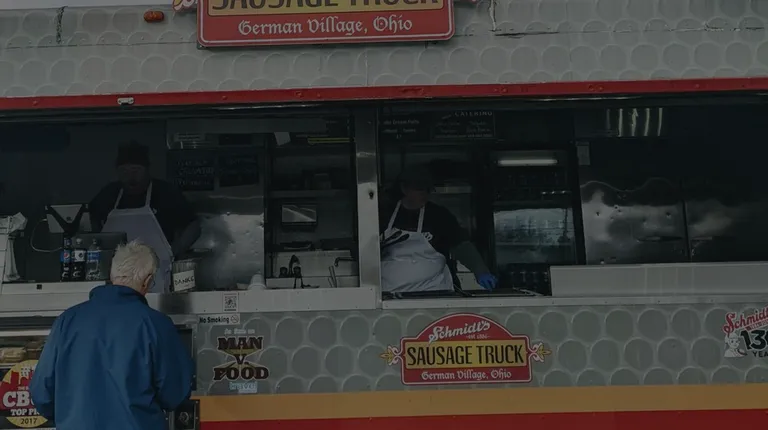 I've been to Schmidt's brick-and-mortar and had recently heard about how they had a food truck about a few weeks ago. I came during Village Lights in German Village and there was a long line! Didn't matter to me since we weren't waiting too long and the workers were quick to prepare food.They mostly had handhelds, like brats and such. I decided to get the Fat Daddy. It's a thick slice of bologna in a pretzel bun. Yummy! It had a nice kick to it.My sister got the Bahama Mama. A brat that she added kraut and pickled cabbage to. She said it tasted like a regular hot dog.Most stuff on the menu is $7.50. Expensive! But I get that they've got to make a profit somehow. Service was alright. No one cracked a smile but they all seemed nice.The menu is pretty limited so I would recommend going to their actual restaurant if you haven't been before. Still, their food is pretty good so it's worth trying the truck as well. You can even get yourself a huge cream puff if you want something sweet.