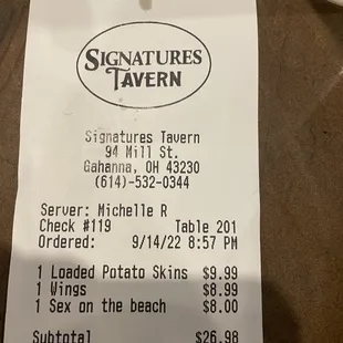Hugging close to Mill Street at number 94 Gahanna, a pub with the name Signatures has hung here since the days Seattle rocked the nation, Friends ran new episodes every autumn Thursday Night, and Air Jordan raised trophy after trophy--that the 90s there for you Gen Zers. The old joint went by Signatures Stone Mill Tavern before being bought in 2021, the buyer shorting the name. But the question I have walking in is: what is this place's signature? For the steps in is up to a beautiful wine rack that more than suggest an upscale, trendy bar. The symbolism so on brand and universal that many must had stood there waiting for a server to lead them to seats until management put up a sign asking incomers to seat themselves. Turning the corner though reveals the games, beer signs, and quotidian fixtures of a dive. The dive idea though subverted by the menu that suggests an attempt at gastropub. No matter the confusion though, Signatures is a pretty good hang with some outstanding grub. I've visited several times, usually on hot afternoons digging it's dark lair of cool shelter and laid back feel. Great place for a day date when the kids are at school to have a bite and a drink and a long kiss feeling like a kid again as the neon alcohol signs burn red and blue off the bar-back mirror and into the darkness. They usually have a host of drafts to pick from. The usual selection of domestic brew, crafts, ales, from statewide breweries. The food is great. Love their Signature Club, that signs off with fresh roast beef, smoked turkey, tasty ham topped perfectly with Swiss, mayo, lettuce, and tomato on wheat. Their mushroom burger is pretty good. I also love their rendition of Turkey Bacon Club featuring toasted challah, tomato, mayo, cheddar, and lettuce. I also had a decent, 'basic' Italian here. Curses on me as I have not tried their signature item. According to a Dispatch article by Marla Kuhlman the place is famous for Pasta Chips, served with a marinara sauce handed down from the several owners of the join from the spots original biz, an Italian restaurant known as Wilson's. They also seem proud of their bourbon but I am not a drink of the spirit, if you are look for the next tasting.Regardless, I will sign my John Hancock on credit slips in the future for sure!
