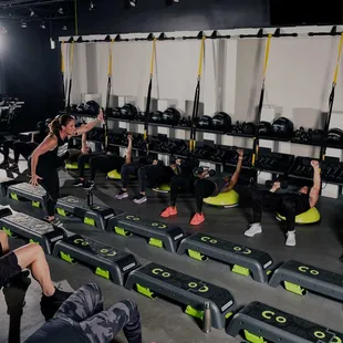 Very fun and energetic atmosphere! Love the yoga at the end to really wind down and feel refreshed. Clean, new equipment. Non-intimidating. Very fast paced so if you're new to fitness, just jump in and don't be afraid to ask the instructors for help on form, etc, they are all very friendly.