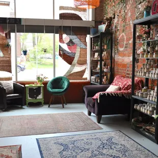 First of all, this space is simply gorgeous and inspiring. It has kind of an urban industrial charm to it- furniture made from up-cycled objects such as doors, cinderblocks, tires, boards- tons of unique clocks as well. I found it to be a very relaxing environment. We were walked through step by step how to make a candle which ended up being HUGE - way bigger than I thought it was going to be for sure. It was made inside a planter that can be reused once the candle has burnt out. What was cool about the Studio 614 workshop is that we got to thread the wick and attach it ourselves as well as learn fun tidbits of knowledge about candle making/care and scents. I have made candles elsewhere in Columbus but it was nice how hands-on 614 was in their experience and that we were able to learn something new. I selected Honeysuckle and Beach Linen! The scents were all strong and vibrant and the workshop was filled with so many delightful scents throughout the process. After being assisted with the pouring and mixing, guests were invited to paint their holder however they'd like with acrylic paints and paint markers. It was really cool seeing everyone's different designs and knowing that the candle containers can be recycled into a planter instead of just thrown out. If you are someone who is concerned about natural ingredients, they had essential oil options to choose from to make a 100% natural candle. The wicks were cotton as well. After our candle designs had dried, guests were invited to take a photo before leaving to be posted by Studio 614, if desired, and they offered to take one on your phone as well. We were invited back with a coupon, loyalty card, and a smile! All in all, this was a great workshop and very hospitable staff in my opinion. I witnessed them go around and help each table and provide assistance to any student that needed it. I would definitely recommend Studio 614- they are doing a great job growing Columbus' art scene.