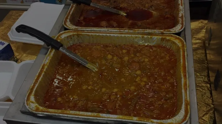 Warming trays with the day's menu