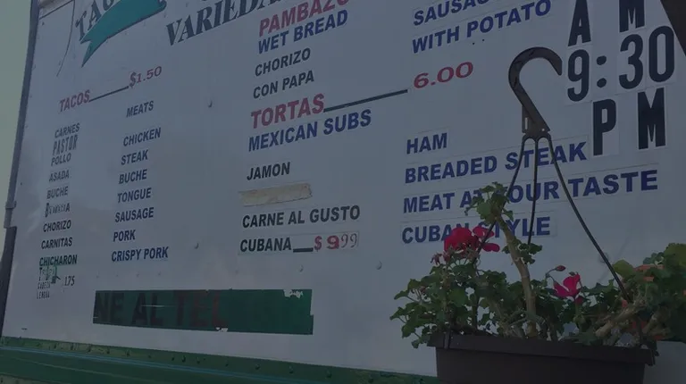Ths is the real deal. The tacos are cheap but small, so load up, you will be happy you did. Also has burritos, tortas, gorditas, sopas, etc... All your regular taco truck basics. And something called a "Pambazo" (look it up on google) which looks amazing and will get next time. We waited behind a carload of Mexicans - if anything tells you that it's authentic nothing will.Tacos are $1.50 each, and choice are : beef, chicken, carnitas, al pastor, chorizo, tripa, barbacoa, cabeza, lingua, chiccarone, ... and I'm sure I missed at least one.