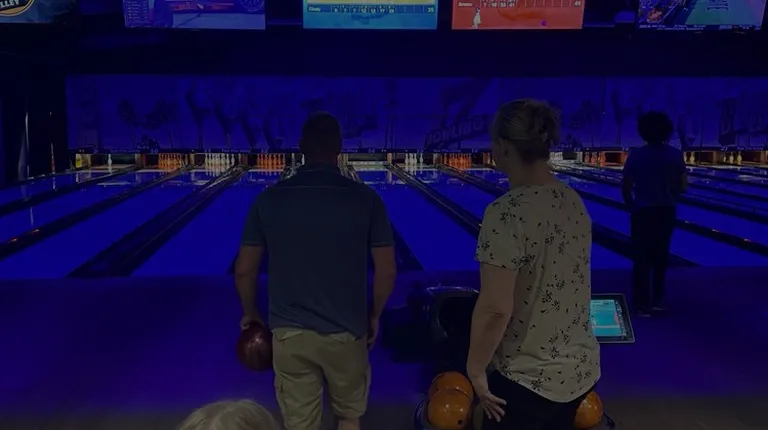 bowling lanes with neon lights
