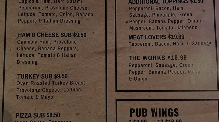 a menu for the pub