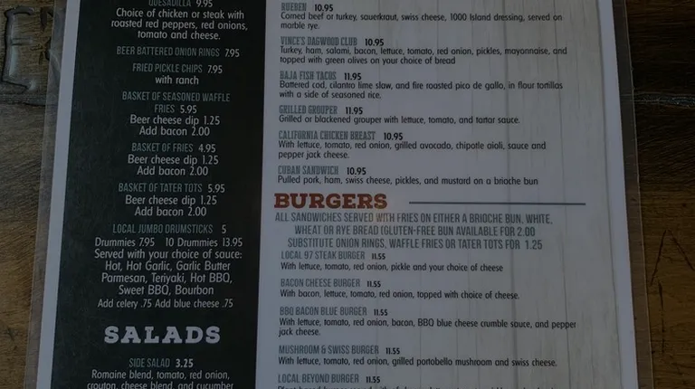 Stopped in for a drink and an appetizer with a friend. I ordered the 5 drummies, OMG the price was like $7 so I thought they were wing size drummies. They were FULL size drum sticks. Lightly breaded, perfectly cooked, stated as locally sourced. My friend got chicken fingers and fries, which were delicious also.The local @ 97, is a neighborhood sports bar that might be a hidden food gem, if everything is as good as the drummies, it a .Staff very friendly, lots of TV, nice patio. Prices are reasonable.