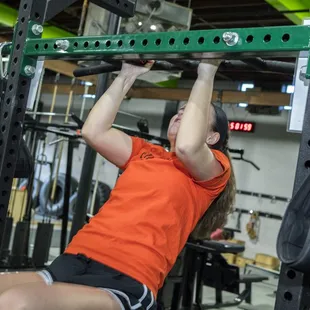 Laurie doing pull ups.