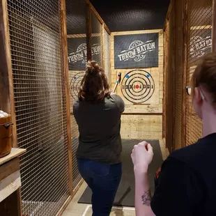 Great place for a date night! You get an hour for $65 per couple. Drinks for purchase at the bar. You can also bring food in too! They have a worker show you the ropes and how to throw.