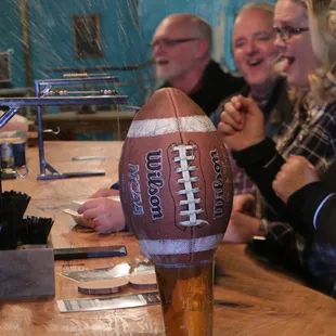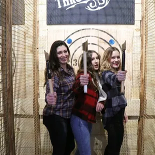 I had never thrown a football at bowling pins. I was not good (but I can't wait to go back.)I'll say this here- YOU NEED TO COME HERE. They have something for everyone.First- our group came to Throw Nation primarily to Bowl- with footballs- by throwing them. Not your father's NFL or even Aunt Maude's Saturday afternoon Bowling For Dollars. This was much better.I attached a photo of the rules of the game, but if you're lucky you'll have the amazing "Ang the last Axe Bender" (AKA Daria) to guide you through the ins-and-outs of the game. She was great! Basically you throw a football at the pins to try and knock over as many as you can. The pins are actual, full weighted bowling pins- so they won't topple over in a close call or at the surprise gust of a mighty wind. But here's the catch- during the game, if a pin is knocked over for any reason it's fair game and stays down. So if you accidentally knock a pin over because you tripped on a Canadian team mate- it counts the same as if the opposition knocked it over. If the opponent throws the ball and it bounces off the wall, your leg and then topples three pins on the back row- they count. We learned that one the hard way, but our team finally won the last of our three matches. We left the playing field with a smaller slice of what pride we came in with, but really success is just playing this game here.What's going on at the far wall when you arrive is what this place is really known for though- the axe throwing. Think Grizzly Adams meets James Bond for drinks, shaken- not stirred- and they bring three friends each. What you get is an opportunity to throw axes at targets, score points and feel like your life needs much more plaid in it, all while contemplating the max possible length of your beard. There are even axe throwing leagues for those who catch the fever- and believe me, the fever was for more than just cowbell.Which brings up a good point- you sign a waiver as soon as you arrive. Trust me, you should, because while throwing things like axes, footballs and other items can be fun- word on the street is it can also be somewhat dangerous.There is a menu with pizza and other items, local craft beers, domestics and a full bar. But as the sign says- no liquor for those who are throwing axes. Sounds like a good rule to have. There are TVs and projection screens to make sure you don't miss a pitch, play or match. But- here's a tip: if you're throwing an axe, forget about the TV and just try not to scalp your cousin Ricky. They do take walk-ups but honestly you're better off looking on the website and locking in a time to go- it can get busy and you don't want to show up and miss out on the fun.There are some cool shirts for sale too! (Why didn't I think to have axes added to the American flag to replace an occasional stripe. Genius.)Ok- you've heard me now make a plan to try Throw Nation yourself.+ Great games+ Food and a full bar+ YOU GET TO THROW AXES!!!!!+ Fun, active and likable staff members (Like Ang the Ace Bender, who's name was actually Daria, and she was awesome!)+ Plenty of space and tables+ Ample parking+ Reservations available online to make sure you and your friends/family/targets get to play when you want.And I guarantee you will leave with at least one great story to tell. Hopefully it won't be at your expense, but even then you will have a great time of you go.