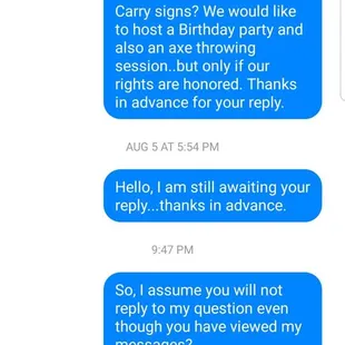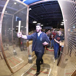 This place was SOOOOOOO FUNNNNNN!!!Came here on a work holiday event and I absolutely love their entire deal... bar with drinks, lanes with axe throwing and they even offer to either have a trainer do an initial session OR stay the entire time! We opted to have an initial session and then be let loose. They even gave us dry erase boards to keep track of scores. We had a part of 11 and it didn't take too long but also didn't go by too fast to get through everyone. We showed up at 5:30, started throwing at 6pm and I think were done by 7:30 so we could get to dinner at 7:45. Overall it was SOOOOOOOOOOOOOO fun and we will DEFINITELY be back for more axe throwing!!!
