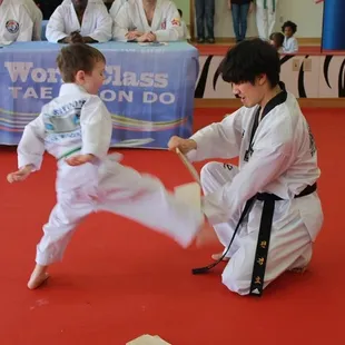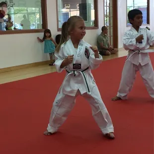 I have two children learning Taekwondo at Tiger Woos, and it has been a great experience for both of them. Three years ago, my oldest enrolled at 5 years old as a Little Tiger. The confidence, balance, and life skills that she has gained has been wonderful. This past year, my 4 year old has started. In just the 5 months since she has been going, her focus, ability to sit still and pay attention, willingness to take direction, and her general stubbornness has improved immensely. She genuinely wants to do well, and we have seen those skills directly translate to her preschool work. This school is about so much more than just kicking, forms, board breaking, sparring, self-defense and general exercise and flexibility, although those are a big part of it. The teaching of respect, how to push your self to new limits, the meaning of giving your best effort and not accepting anything less are lessons that my children will carry far beyond the walls of the school.