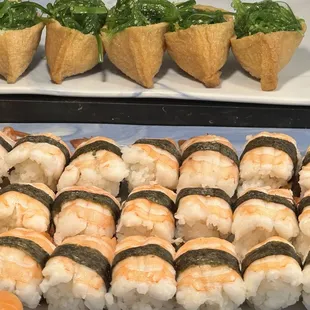 The 5 star ratings has me a bit puzzled. It's not a bad place, as I'd definitely go again at lunch only though for $18. Would definitely not spend $26 for dinner as there's too many better quality food places for that price. Let's start with what was oishi! Hibachi Hot sour soupChicken yakitoriWingsFried fare was overall pretty yummy. Why do they fry shrimp tempura with the shell? Sub par ~Sushi was not bad but not the best quality. Definitely edibleGyozaNo Oishii ~Squid saladTamagoSee weed saladDesserts were flavorless. It has standard Chinese buffet flare with a Japanese twist. If you want excellent Japanese food stick with the heavy hitters. This is not the place. But it is all you can eat so there's that.