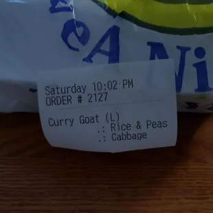 Large Curry goat with cabbage rice & beans