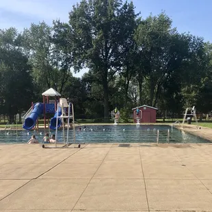 This is one of our favorite pools to visit! One of the biggest reasons is because it's never packed. In fact, there have been plenty of times we've gone when there were only a handful of other people there. They've done lots of updates and have a nice shaded area for those who prefer it. The pool has a graduated edge at the shallow end which is super nice for the kids. It also has the mushroom shaped fountain that my kids love although it was off for maintenance the last time we went. There are two small slides and they are perfect for both the littler kids and the big ones. They go fast but they're very short and parents can catch the little ones at the bottom. The pool isn't heated so it can be super cold if it's not a hot day but we like it. There are two diving boards and lifeguards throughout all areas of the pool. The price is great at around $6-7 per person with kids 3 and under being free. They allow floats/rafts as long as they're not outrageously sized which makes it fun as most pools do not allow this. I don't believe they have a concession stand...maybe they do and it was closed or maybe I've been too focused elsewhere. Who knows. I've never noticed one so do with that what you will. The bathrooms are clean and have showers/changing space. Parking is ample and shaded in most areas. The only downside to this pool is that they have had zero lounge chairs or seating of any type. We usually just bring a beach blanket and call it a day. Works for us! I was told they would have chairs this year so maybe by now they do. Worth checking out either way. Highly recommend a visit if you're looking to swim with little ones or big kids and don't want a ridiculously crowded pool. Schaffner's is right down the street and makes for a great after-swimming treat! They have thee BEST ice cream and have a drive thru, indoor seating and a nice, newly built patio for outdoor dining. They have a lot more than ice cream and it's all really good. Enjoy!