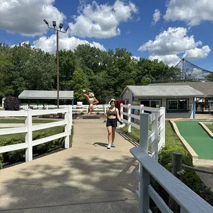 We went here for putt putt with my fiancé's family on a Sunday and the place was hoppin'! I had no idea this place even existed but they have two nice putt putt courses available. Everything seemed well maintained and we moved through the course much faster than I expected for having 10 people in our group. The holes weren't too challenging but not super easy either. Many of them had parts of the grass that were raised that could trip you up but if you could avoid getting stuck with those, you were in good shape! If you're looking for another putt putt option other than Magic Mountain, give this place a shot!