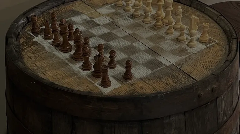 a chess board in front of a window