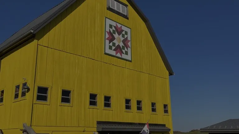 a barn with a horse in the background