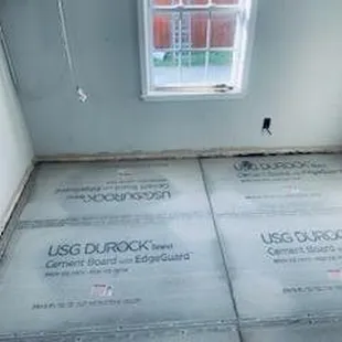 the flooring being installed