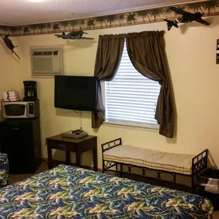 We had such a great time. The rooms were very clean shower was very clean great TV great air-conditioning. The pool is very nice and clean. There is even a barbecue pit. But we did not use the barbecue pit. Very close to the beach and you will have to try out MacDaddy's.