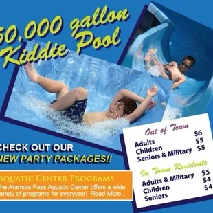 What an amazing little slice of paradise! Aransas Pass Aquatic Center is THE place to go to take a dip and cool off during the dog days of summer. My two daughters, 3 grandchildren and myself made some fabulous memories this past weekend here. There are 3 pools. A HUGE pool for the little ones that our 4 year olds were able to stand in the entire time, lots of fun fountains, sprayers, slides etc., which was so much fun for us adults as well. A pool with 2 diving boards which includes a high dive, and a really fun rope net that goes from one side to the other to swing from. And a pool with 3 water slides! I'm telling ya, this place ROCKS!!!The staff were all friendly, bathrooms were pretty clean, plenty of lifeguards, concessions and very reasonably priced at $5 per adult and $4 per child. Can't wait to go back!
