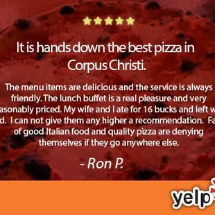 Dear reader, I needed pizza . We've just left the beach and I had a hankering for pizza, a Jones even. My wife, looked up the usual suspects in the area , and when she said Authentic New York Pizza, the decision was made. We found this mom and pop establishment nestled off Staples and the Pizza did not disappoint . The waitstaff was courteous and friendly , and we expressed our enjoyment to find a local gem. It's clean , with Italian American decor. We left most happy, and ready to share the word . Until next time , gumshoes. Ciao