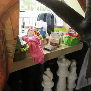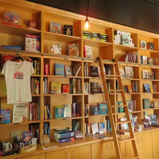 My wife and I found some cool gifts for our son and daughter-in-law. He got a coffee cup with a teacher nutritional fact chart on its side....and she got a when in doubt go to the library t shirt...appropriate for a librarian. The have books for big people and kids, scrubs for nurses, toys and all kinds of gifts, a giant chess set and stuffed animals. Doesn't hurt to be located in the same building as a cool classic diner.