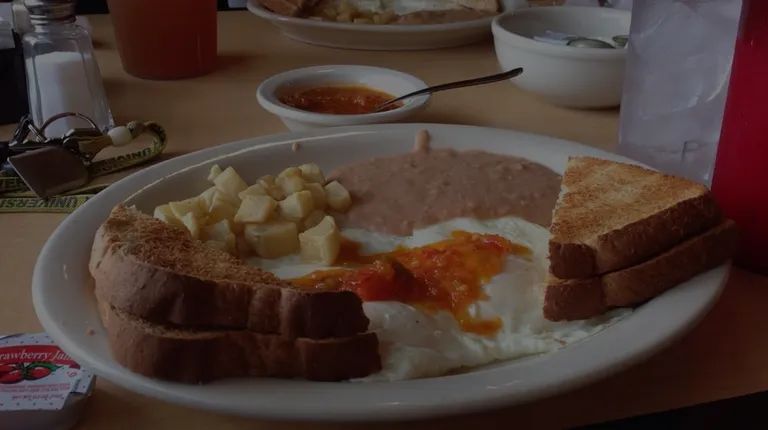 We came here for breakfast. It wasn't bad but it wasn't great. The ham is thin sliced packaged ham. I ordered a #3 with beans instead of potatoes. The refried beans didn't have much flavor. They put the wrong bread on my plate. We had to wait a few minutes for utensils after our breakfast arrived at the table. My whole wheat toast was a little burned. We asked for strawberry jelly for my mom and the waitress didn't try to get us more, she just said that's how they come, meaning more grape than strawberry. I think she didn't like that I brought my own drink in and ordered water. My mug had Minute Maid 50 orange juice. I like orange juice for breakfast but I'm on a lower carb low sugar diet. My husband loved the menudo though. The prices were great, but it isn't worth coming back to.