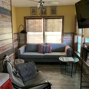 We had a great stay. We were in the Rock N Roll cabin. 3 bedroom and 1 1/2 bath. Kitchen is full stocked with supplies. Becky, our host was very friendly and helpful. We loved sitting on the porch and meeting other guest. They allowed dogs so we loved the dogs on the property. It is a 7 min walk to the beach. Great stay.