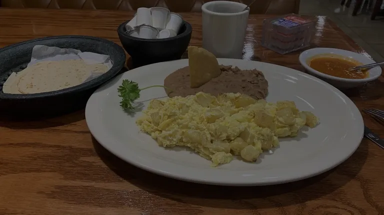 My husband, his aunt, and I came here twice for breakfast. On our first visit, his aunt and I shared a chilaquiles with chicken and cheese plate and my husband ordered the Special breakfast. The chilaquiles were excellent although I did have to add some extra salsa to increase the flavor. The beans were pretty good as well. The flour tortillas were NOT homemade which was a huge disappointment! They were the kind that are ready to cook. In my opinion, they took a shortcut that resulted in a star deduction. I expected the real deal being so close to the border and all. The Special breakfast came with two buttermilk pancakes, two eggs, one bacon, and one sausage. The pancakes were damn good, nice & fluffy and yummy! The scrambled eggs were fresh and well prepared. The bacon and sausage were good. The iced tea tasted very fresh. I'm not sure if they used filtered water but it had a clean taste to it. On our second visit we all ordered tacos. My husband and his aunt both ordered two barbacoa tacos and I ordered a bacon and egg and also a bean and cheese with bacon. My husband said that his tacos were a bit underwhelming, definitely NOT worth the $4 per taco! The meat portion in the barbacoa tacos were average and the meat was very greasy. My bacon and egg taco was pretty good. The portion of bacon and eggs were generous, I could have made an extra taco. I was surprised to see little peices of bacon mixed in with the egg instead on a strip of bacon. The bean and cheese with bacon taco was just okay. The portion size was average. Overall, we might consider coming back but not for the tacos. I will stick to the chilaquiles and my husband will stick to a pancake meal. The service was great but the downfall to this place was the flour tortillas.